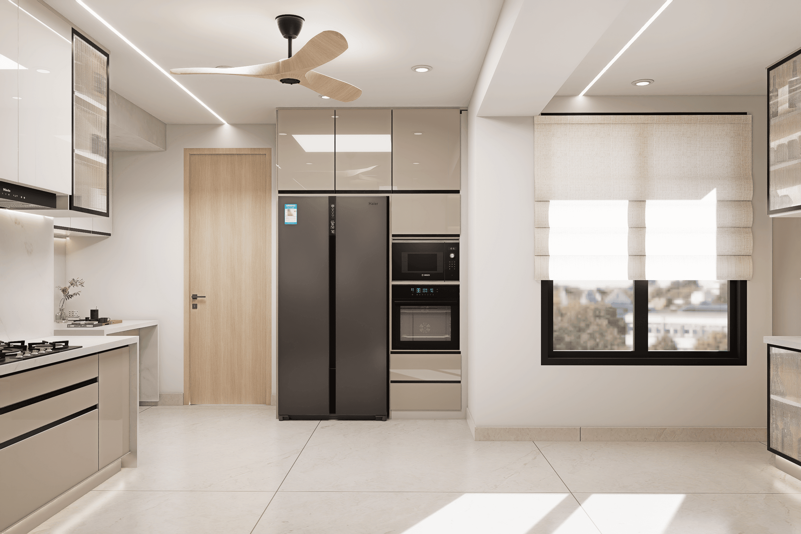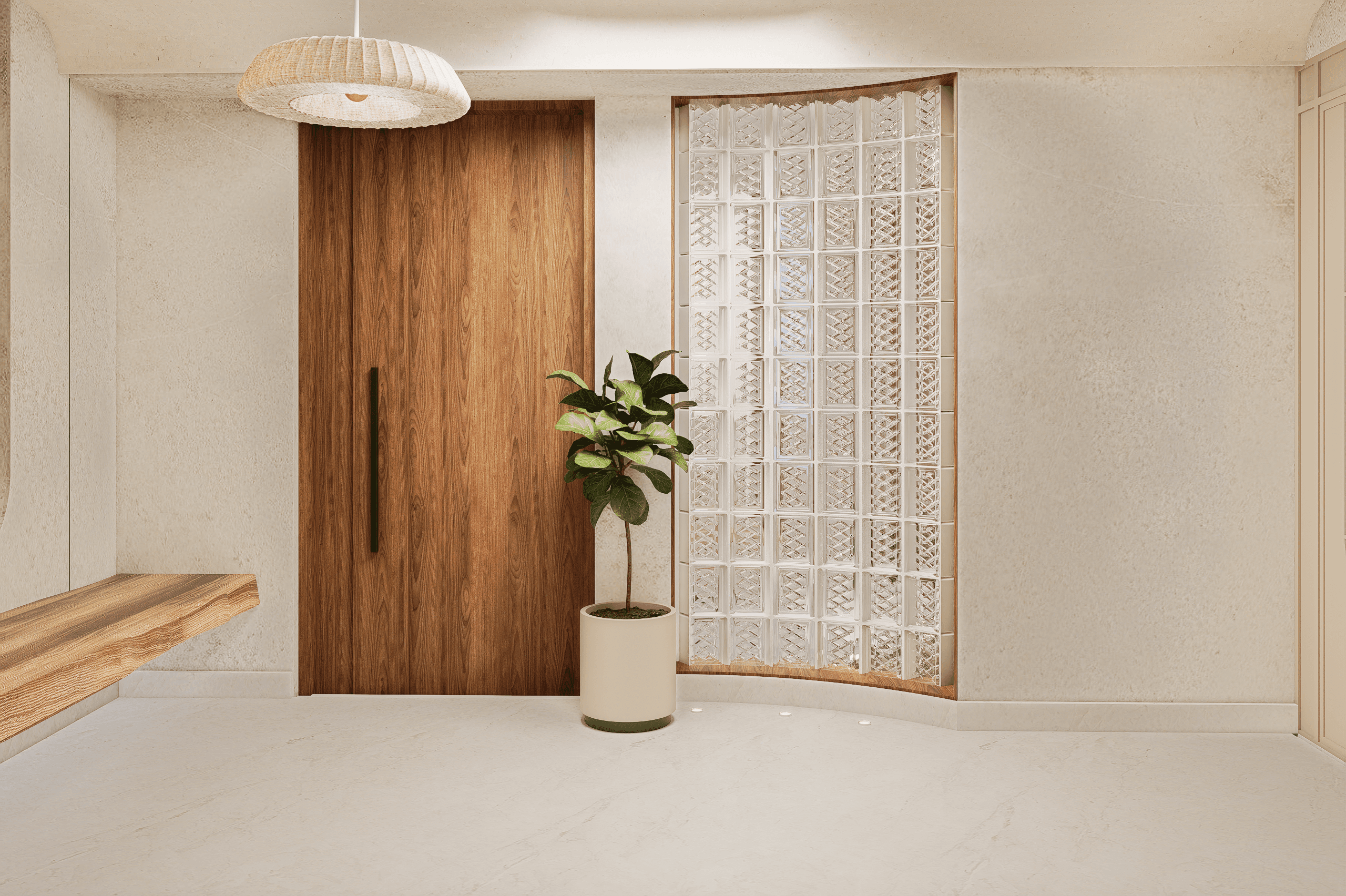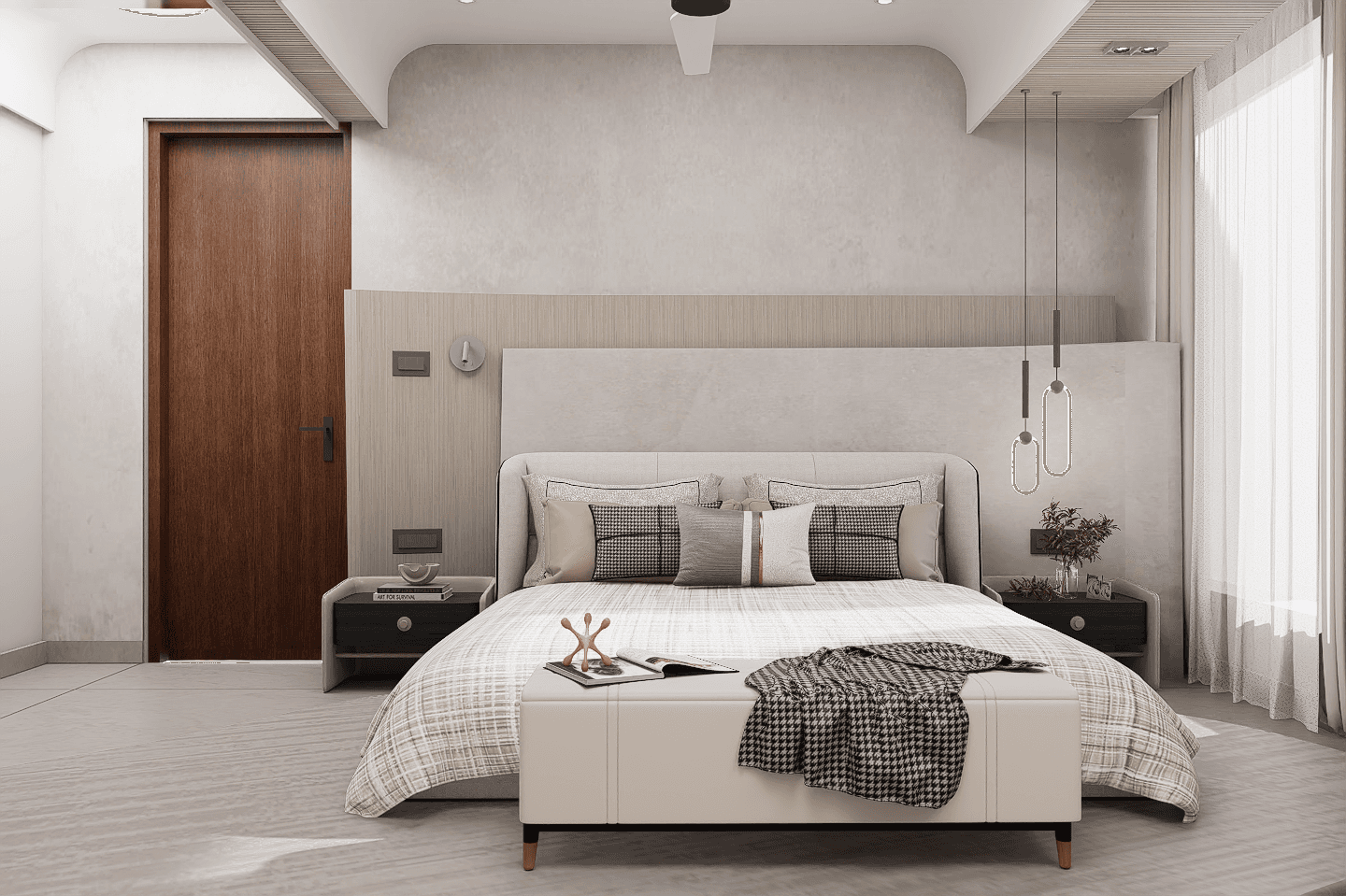 The design process evolved from an open-ended exploration of the floor plate, allowing the spatial framework to be shaped without the limitations of predefined partitions. Early studies focused on reinterpreting the linear footprint through a series of interconnected nodes and axes, where subtle curves were introduced to soften rigidity and establish a sense of continuity. The planning was guided by orientation and the rhythms of everyday life, organizing spaces to respond to light, ventilation, and varying degrees of privacy. Iterative explorations of movement, zoning, and transitions refined the balance between openness and seclusion. Material and detailing decisions were developed as extensions of this spatial logic, reinforcing flow, coherence, and a unified experiential language across the home.
